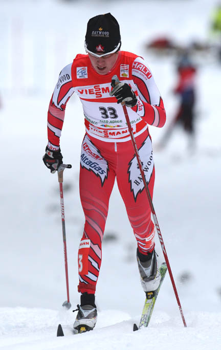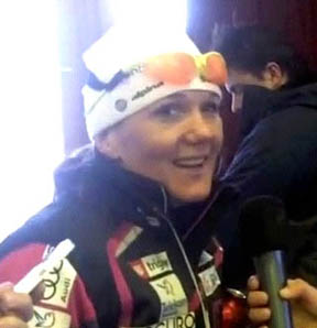 January 9, 2010 (Val di Fiemme, Italy) – Petra Majdic (SLO) is mighty happy to have taken over the TdS leader’s bib winning the Stage 7 women’s 10km classic mass start event by 1/10th of a second over Elene Kolomina (KAZ) and local favorite, Marianna Longa (ITA) at +1.0. Canada’s Sara Renner continues to up her performance claiming 15th on the stage only 7.6s off the winner, and is now 17th overall.