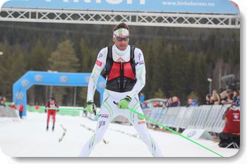 To be on the podium in the Birkebeinerrennet this winter was the goal of the season. Therefore I am really really happy that I did it! My next goal will be to win it, so let’s see when this will be possible! However, I really had good skis today, they were only a little bit slippery in the parts where the track was really icy, but I think that everyone had the same problem. Roger and me, we didn’t plan to go together and to push hard straight away, but somehow it went that way which was good for us. We tried so safe as much energy as possible for the last part of the course. I am not a good downhill skier, so I lost a lot of speed in the last downhill parts and so, Roger and Anders could pass me. But I told myself that it was not over yet. I knew Anders does normally not have a fast finish, but nor do I. So I just went for it and gave everything and luckily it paid off! I am really happy!