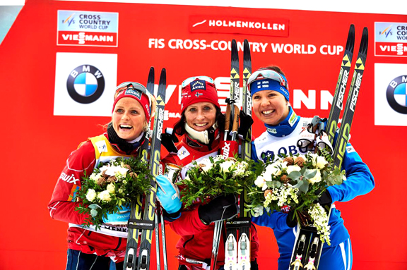 - Final podium (l-r) Johaug 2nd, Bjoergen 1st, Niskanen 3rd © Nordic Focus