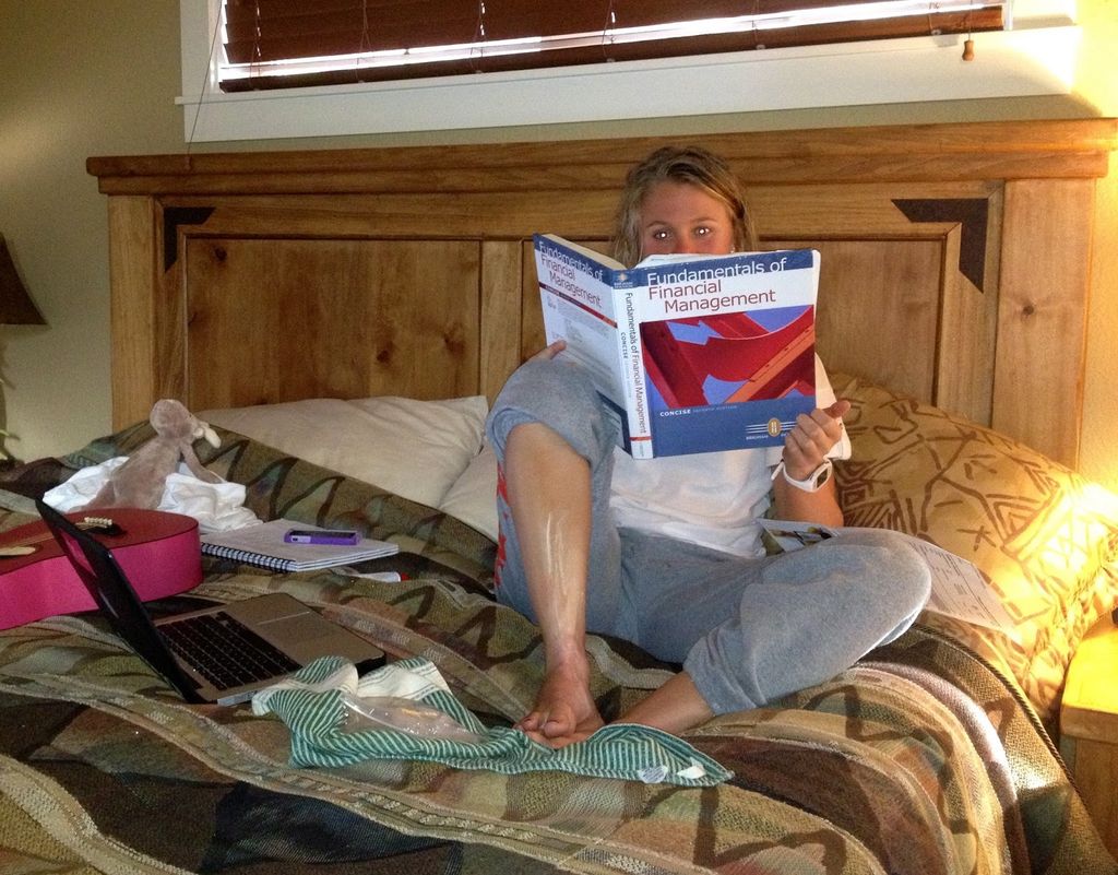 Being a full time athlete and a full time student is quite the feat and Sadie makes it look easy! She attends online class from Europe, training camp, or wherever she may be at the time….. APU online classes are usually at night (Alaska time) which means they might be as early as 5am in central Europe. On World Cup race days she usually gets a pass but otherwise, she’s up early studying away!