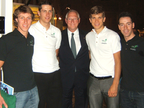 Serge Arsenault thanked everyone who had worked so hard on this project since October 2008, especially in the federal, Quebec, Quebec City, and Montreal governments. Particular thanks were extended to Quebec cabinet ministers Raymond Bachand (Finance) and Nathalie Normandeau (Natural Resources). Arsenault quipped saying, “Whoever thought that working with all these government offices would be so easy.” He noted that many people in Europe had also helped secure the two ProTour races. “The best riders in the world will be there. And because these are World Cup events, riders will gain more points here than at the TdF or the Giro.”
