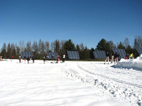 Craftsbury Outdoor Center in VT has incorporated sustainability in its mission statement to be carbon neutral. They use 8 tracking solar panels for 35% of their electricity, highly efficient wood-fired boilers for heating, and a solar hot water system. Starting this winter, the waste heat from their snowmaking system generator will help to heat several buildings. Sleepy Hollow Inn Ski & Bike Center in Huntington, VT gets a total of 32 kW of power from solar panel arrays to provide for electric needs that include power for a snowmaking system used to guarantee snow early in the season. A solar hot water system heats 50% of the hot water use at the inn and the lights on the ski trail are being converted to LED lights. Sleepy Hollow Proprietor Eli Enman commented, “By the end of the year, we’re looking forward to seeing that close to 100% of our total electricity would’ve been powered by solar energy and that includes our all-electric snowmaking system water and air pumps.”