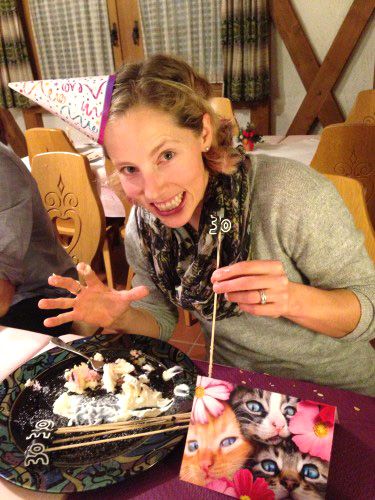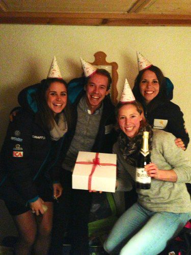 We celebrated Kikkan’s day with cake, candles and party hats (naturally) but we also have some super sweet coaches who happen to travel with sets of fake mustaches. So we had a really, REALLY fun car drive as every time we’d look at each other we’d burst out laughing. The other teams got a kick out of it when we showed up to the venue still sporting our new looks.