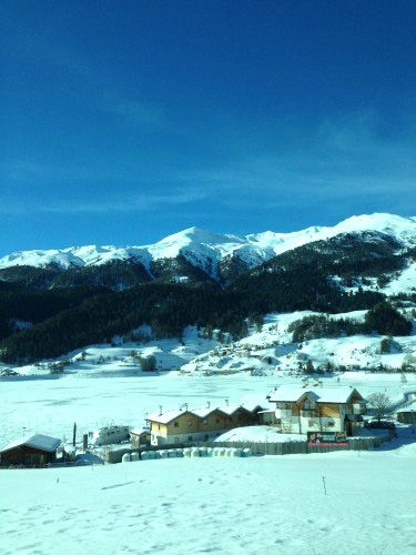 Then we traveled to Val Mustair, Switzerland, on Kikkan’s 30th birthday! We drove by this super cool tower in Italy that sticks straight up from the resovoir. There used to be a town there, but they flooded the town and all the buildings are underwater except for the one you can see in the picture. So cool!