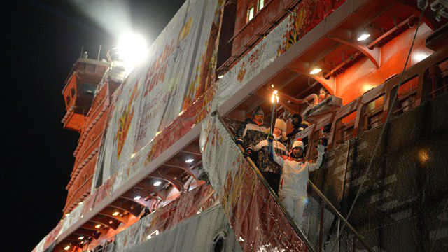 Canadian alpine skiing legend and Chairman of the FIS Sub-Committee for Skiers with a Disability, Steve Podborski, brought the Olympic flame from the ship to the ice when it went on its historic expedition to the North Pole, for the first time in its history.