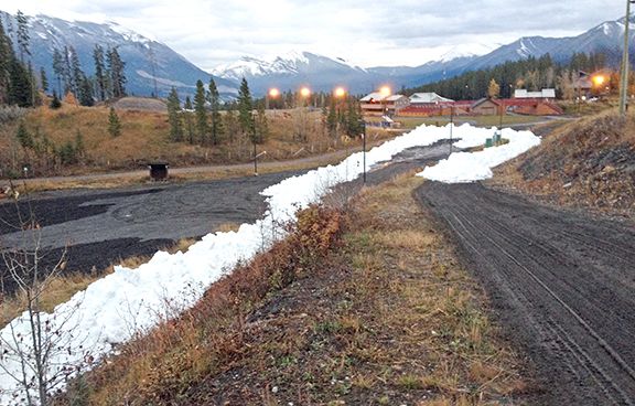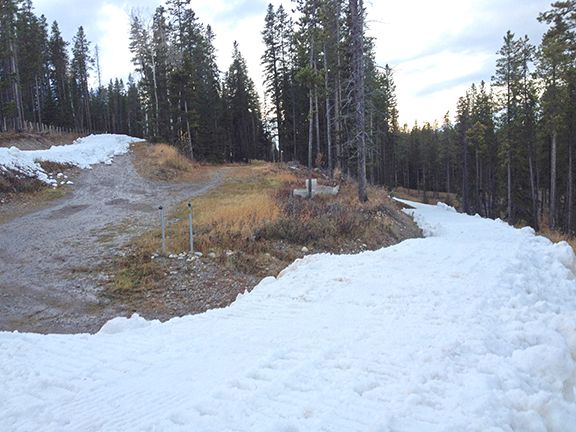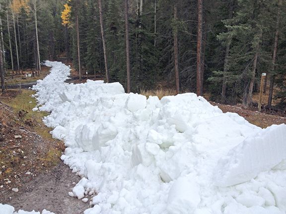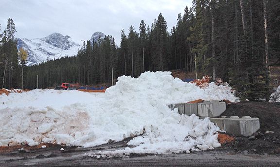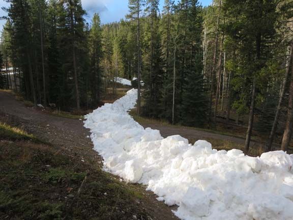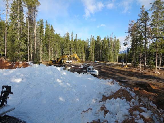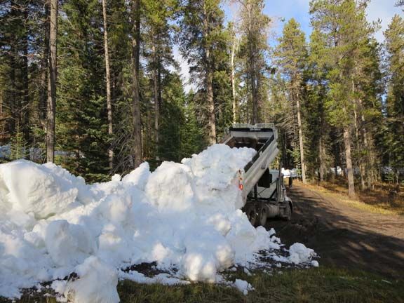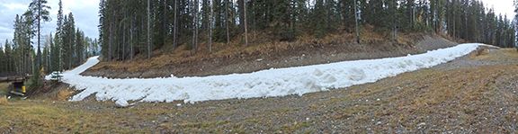 - IMG_5226a.2 The snow storage area where a massive pile of snow was stored through the summer under an insulating layer of sawdust. There is still 5-10 feet of snow left even with the loop nearly complete. [P] Drew Goldsack