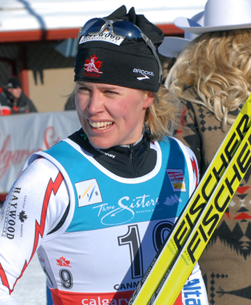 After taking the 2006/07 World Cup season off to have her first child Renner returned to the World Cup scene in Davos, Switzerland this past December with a very solid 38th place finish despite being under the weather. Since then she has not been out of the top 30. Her 2007/08 season-best result came in front of her hometown crowd at the Alberta World Cup in Canmore in the 1.2km classic sprint (placed 14th).