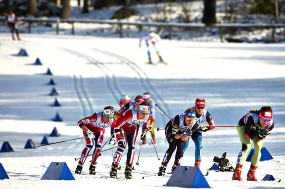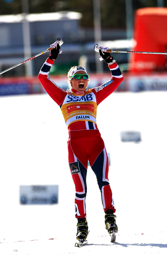 March 15, 2014 (Falun, Sweden) – The battle for the women’s overall World Cup title heated up today in Falun as fiesty Therese Johaug of Norway threw down the gauntlet at the 5km mark dropping teammate Marit Bjoergen as she powered to victory in the women’s 15km Skiathlon boosting her mini tour margin over Bjoergen to 15 seconds.