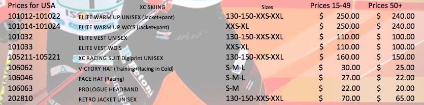 • Finland: Vuokatti Ski Team Jamsankosken Ilves, Lahden Hiihtoseura, Ounasvaaran HS, Kuusamon Erä-Veikot