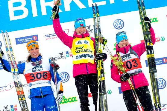 March 16, 2013 (Norway) – Seraina Boner (Team Coop) and Anders Aukland (Team Xtra Personell) won Birkebeinerrennet today. Birkebeinerrennet is the fifth out of six events in Swix Ski Classics and it is by far the hilliest, with several long climbs.