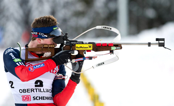 Bitter cold earlier in the day for the women’s race gave way to warmer temperatures in the afternoon for the men’s competition but a strong wind returned making for challenging conditions on the shooting range.