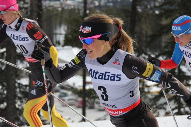 Randall was clearly looking strong and moved to the front on the final climb but lost ground to the Norwegian posse chasing her on the descent and in the final sprint to the line placed a strong 6th matching her best 10km CL result. Maiken Caspersen Falla (Nor) grabbed the final podium spot as Vibeke W Skofterud was 4th and Ingvild Flugstad Oestberg was 5th.