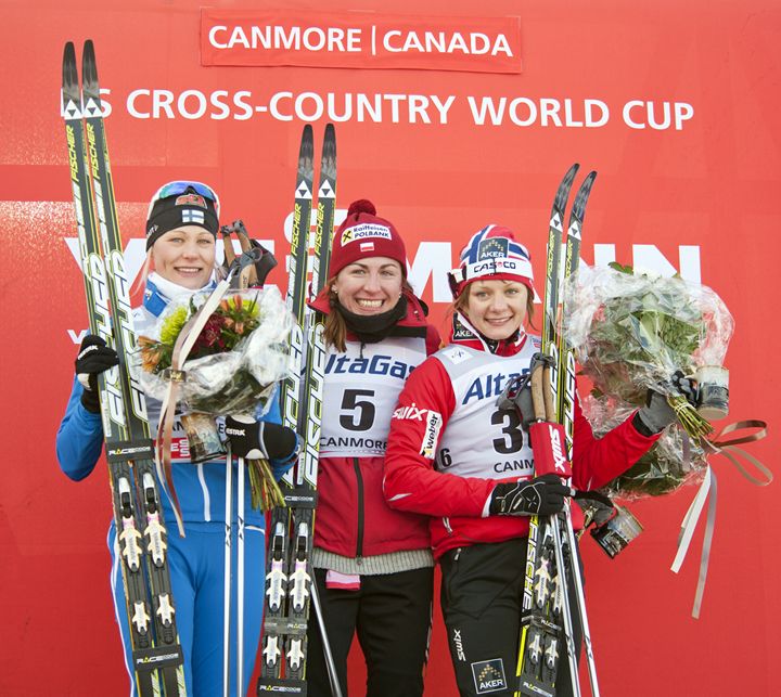 - Women's podium (l-r) Kylloenen 2nd, Kowalczyk 1st, Falla 3rd © Robert Whitney