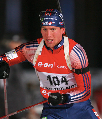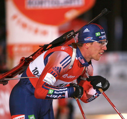 December 1, 2007 (Kontiolahti, Finland) – Tim Burke (Paul Smiths, NY) bounced back today with 12th place in the Men’s 10km Sprint, two days after a disappointing 49th place in the season-opening 20km Individual.